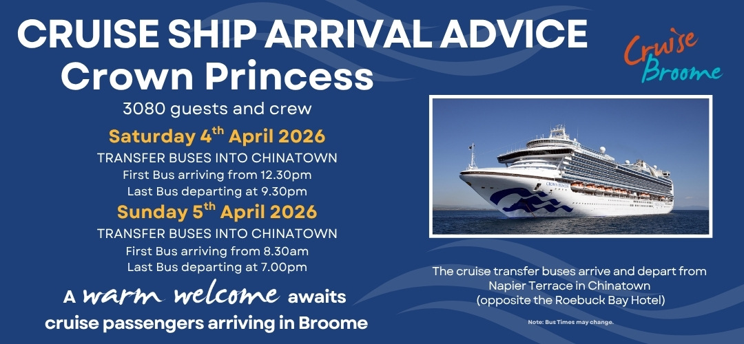Cruise Broome is the newly formed body, charged with the forward planning and development of the cruise ship industry in Broome.