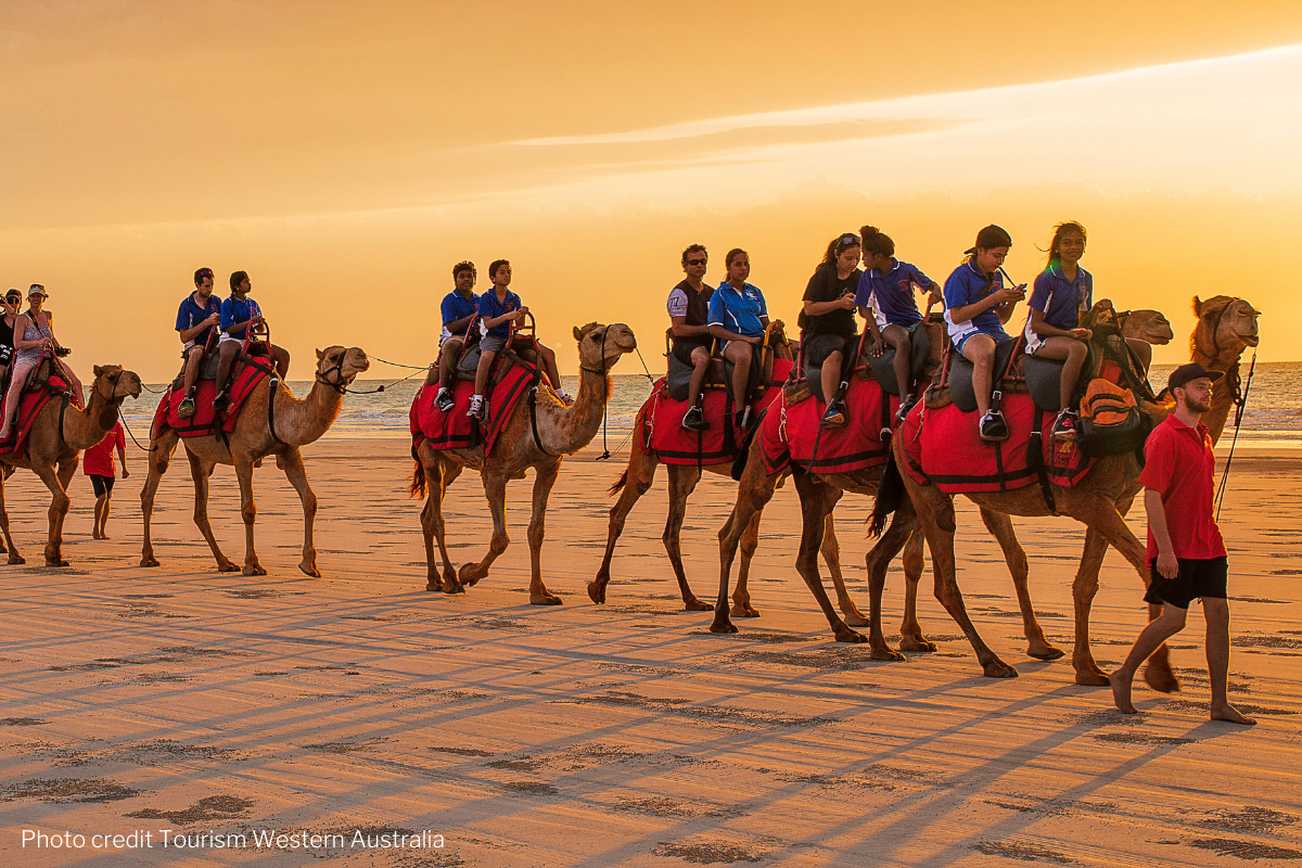 Set up for the day, hire a deck chair and beach umbrella and watch the tide roll in, or hop on a camel at sunset for a uniquely Broome experience.